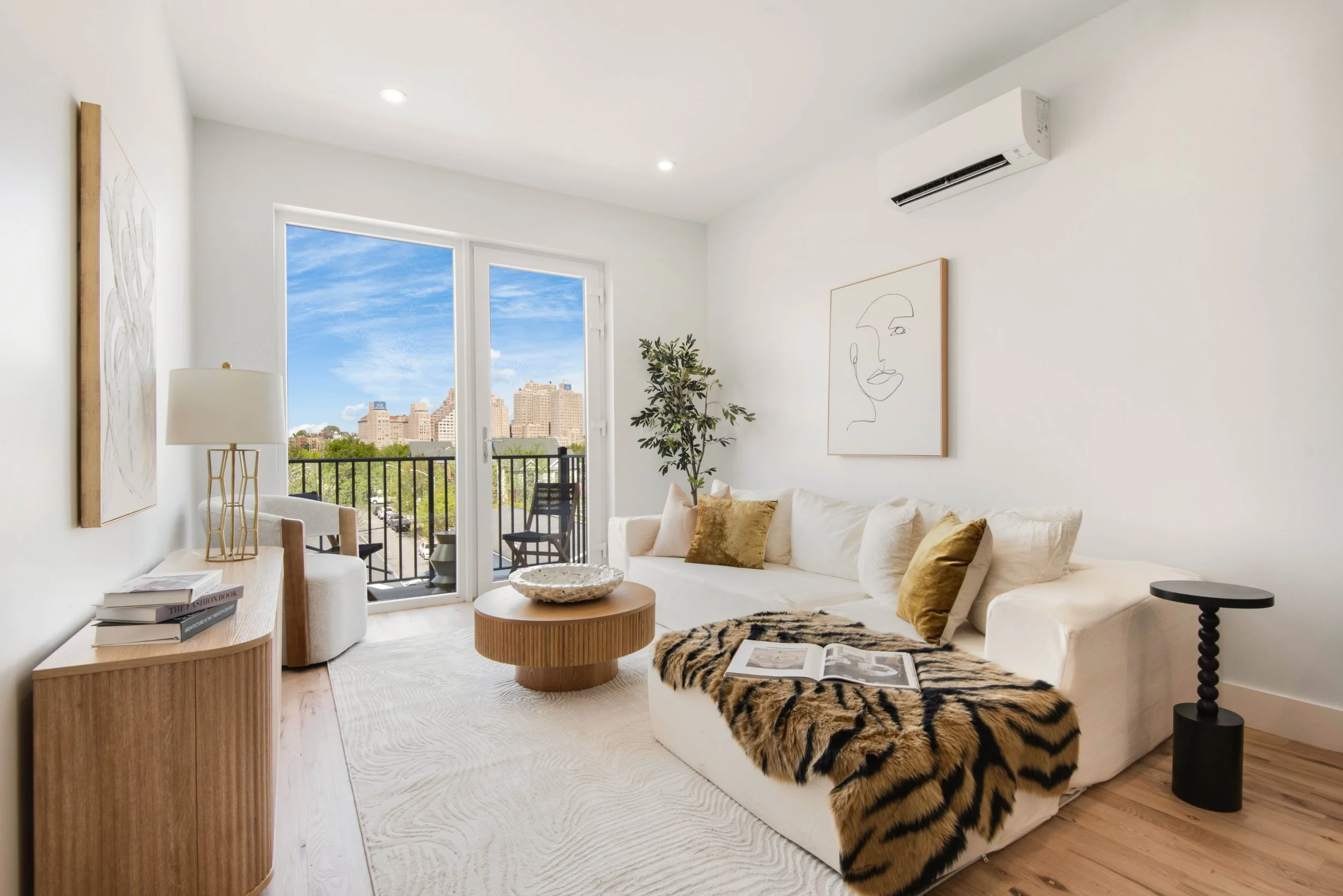 Rising with a classic brick façade accented by sleek aluminum detailing, the building makes an immediate impression—modern, yet rooted in the architectural language of the neighborhood. Positioned in the heart of the Bergen-Lafayette section of Jersey City, the property offers a curated mix of spacious studios and thoughtfully laid-out one- and two-bedroom residences, each designed with livability at the forefront.