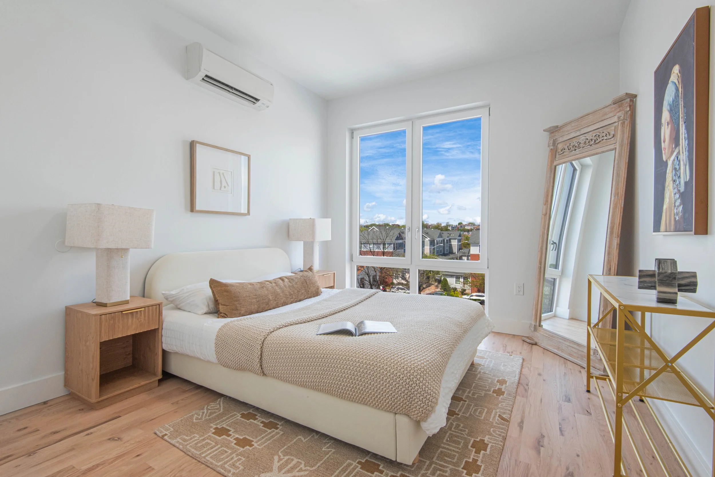 Upstairs, a fully furnished roof deck invites residents to unwind or entertain against sweeping neighborhood views. A dedicated bike storage room speaks to the area’s active, community-driven lifestyle.